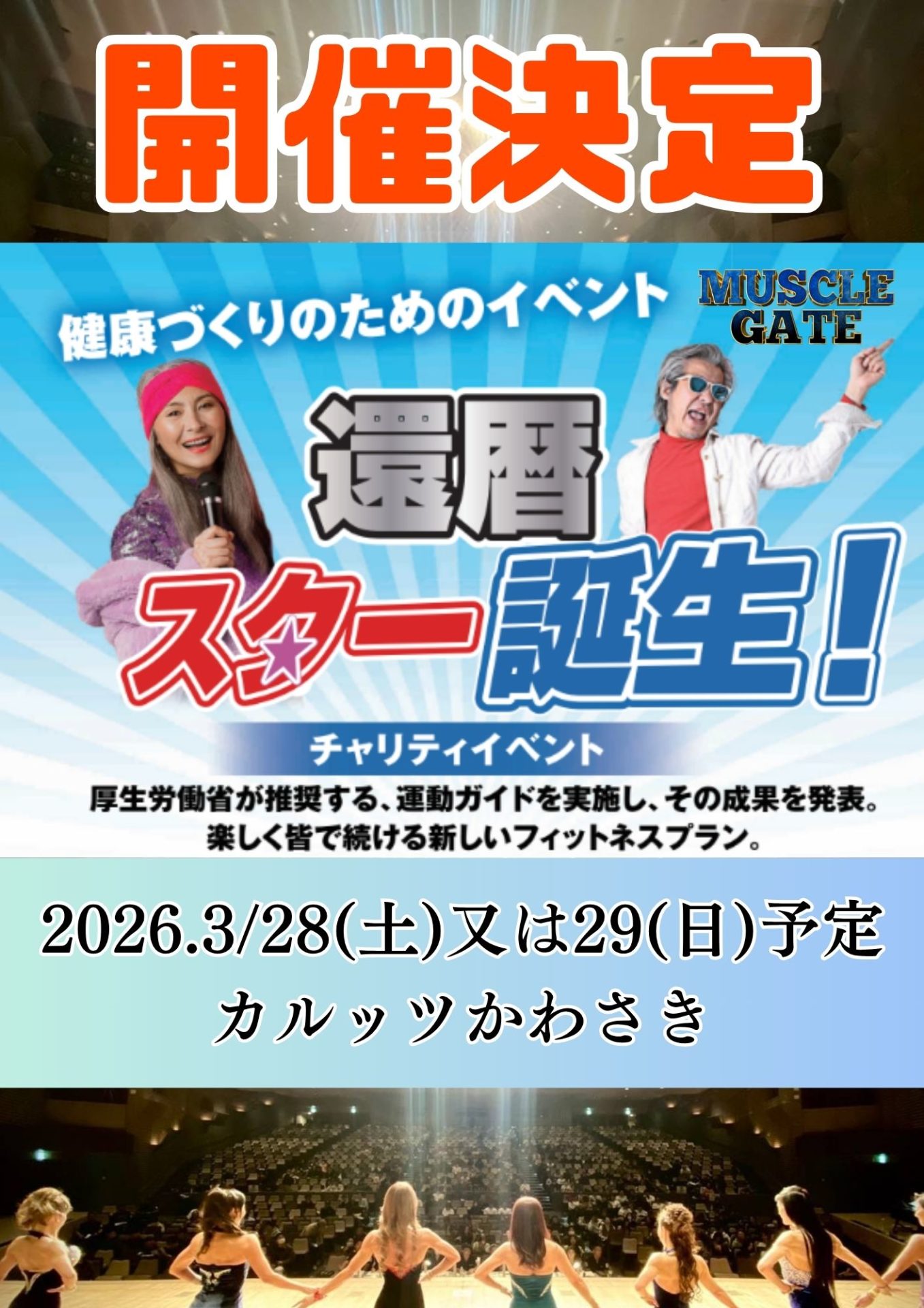 2026年3月28日(土)・29日(日)に開催される「マッスルゲート神奈川大会(カルッツかわさき)」にて、「第2回 還暦スター誕生」イベントの開催が決定いたしました。